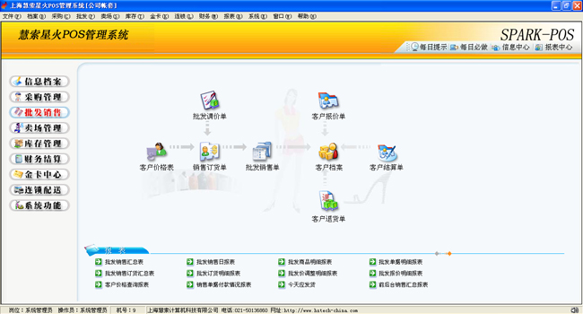 慧索公司针对当前服装零售市场细分化趋势,凭借多年服装零售行业的信息化实施经验,聘请多位具有丰富管理经验的服装零售行业专家为咨询顾问,深入分析服装零售行业的管理现状和发展趋势, 推出Spark服装管理解决方案,满足服装行业对商品颜色、尺码的管理要求,"通过多样化的报表系统实行全程一体化管理, ”以其强大数据信息分析与决策功能,帮助服装零售企业快速加入国际化竞争的大潮流。