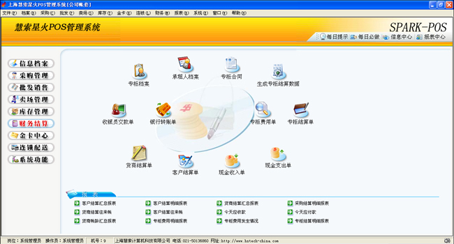 ● 友好清晰的导航界面: 导航界面的巧妙安排,使业务操作一目了然,操作简便。错综复杂的账务处理全部在系统内部完成,操作变得从容简单,省时省心。